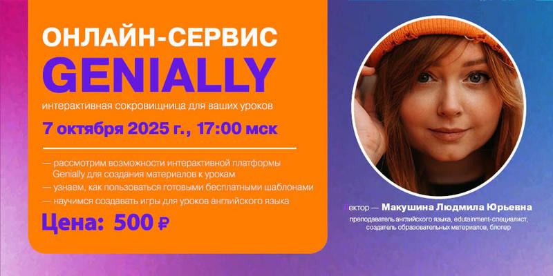 Лектор вебинара - Макушина Людмила Юрьевна, преподаватель английского языка, edutainment-специалист, создатель образовательных материалов, блогер.